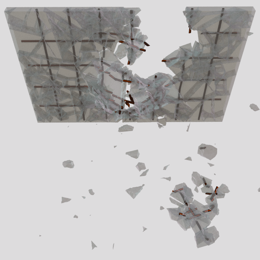 Some experiments incorporating ‘rebar’-like constraints into rigid body destruction. Version 2. Uses glue and hard constraints. Clear-block visualization from version 1. Related Leave a comment Cancel reply Δ Post navigation Previous Previous post: Cloth advectionNext Next post: Peeling and Tearing